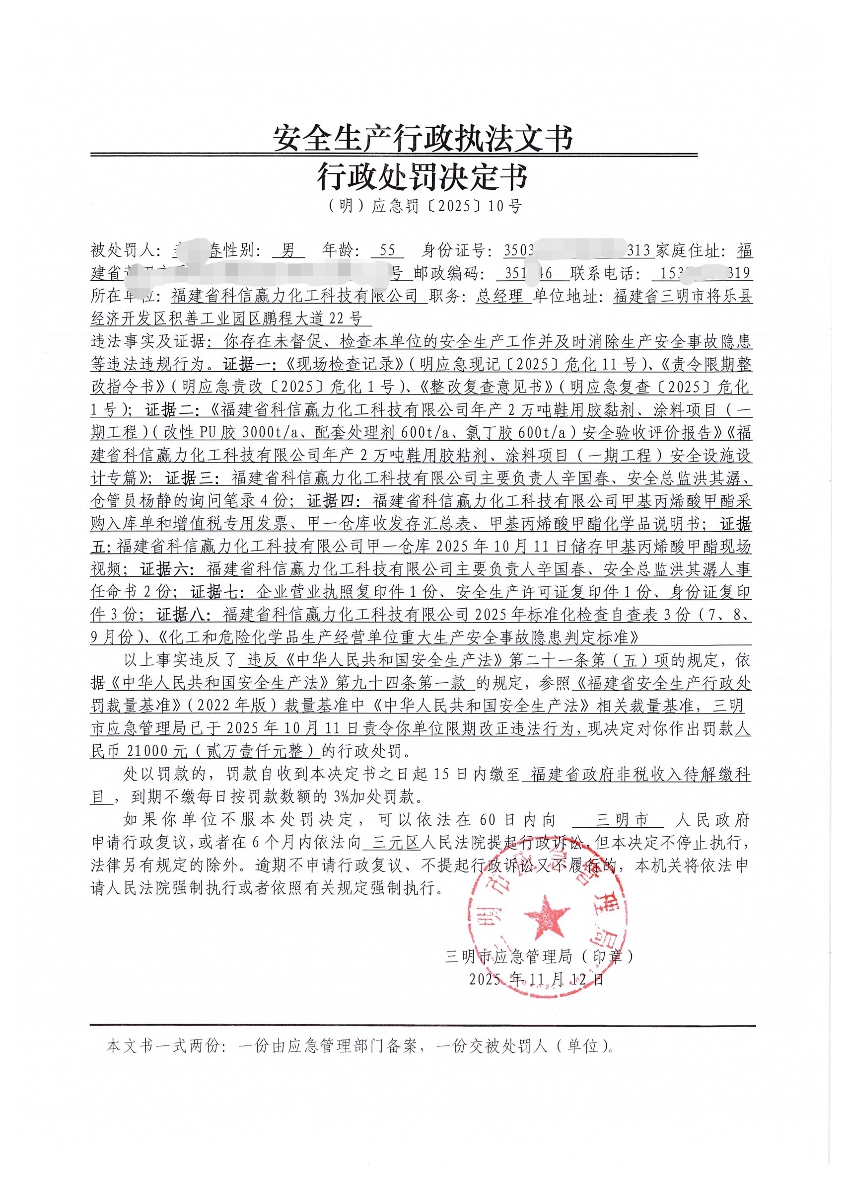 - 行政处罚决定书 2025-11-18